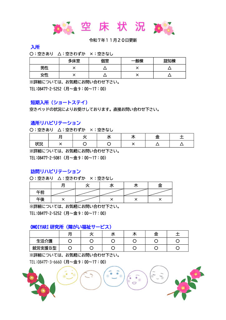 空床情報 令和7年11月20日更新