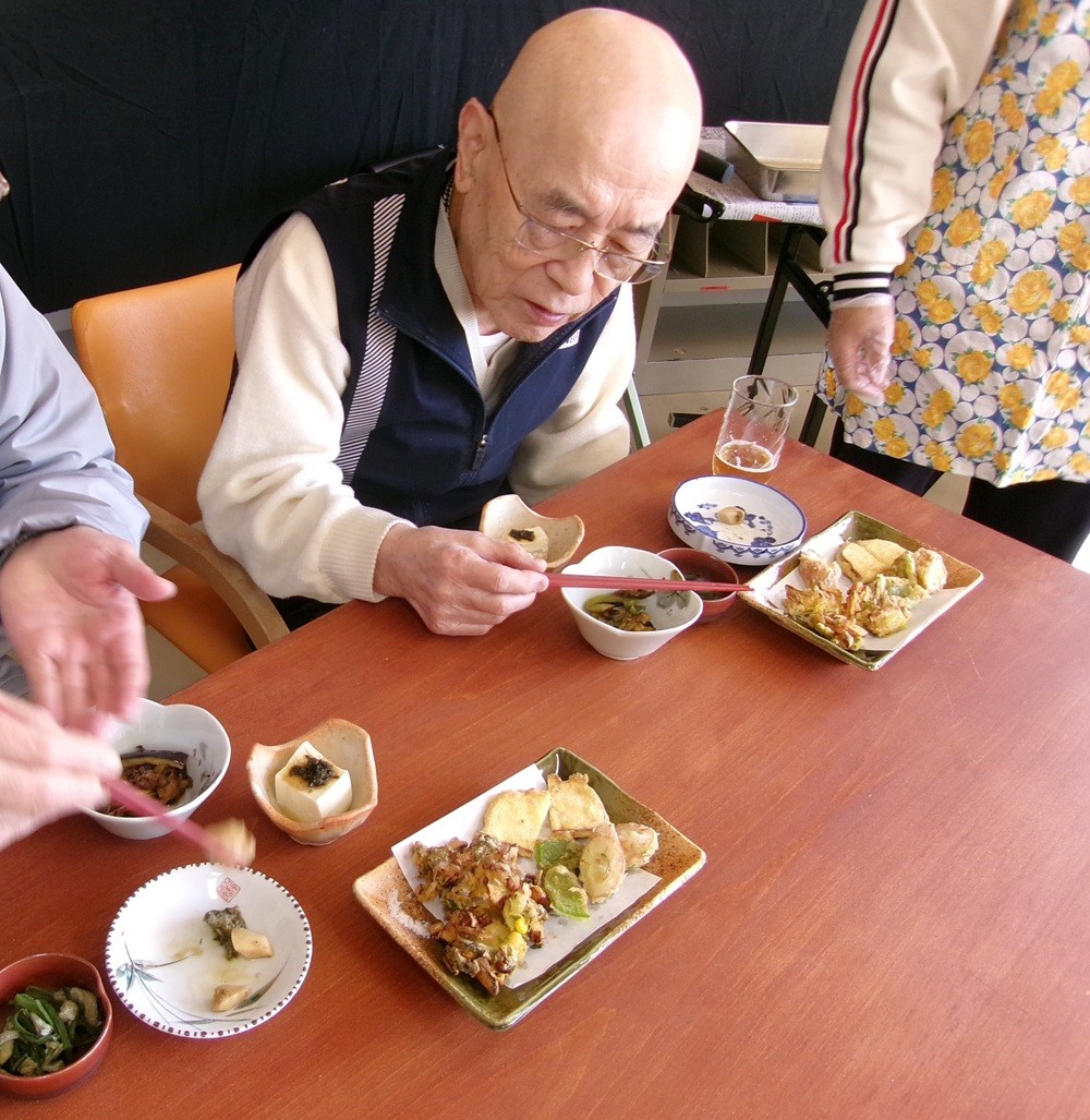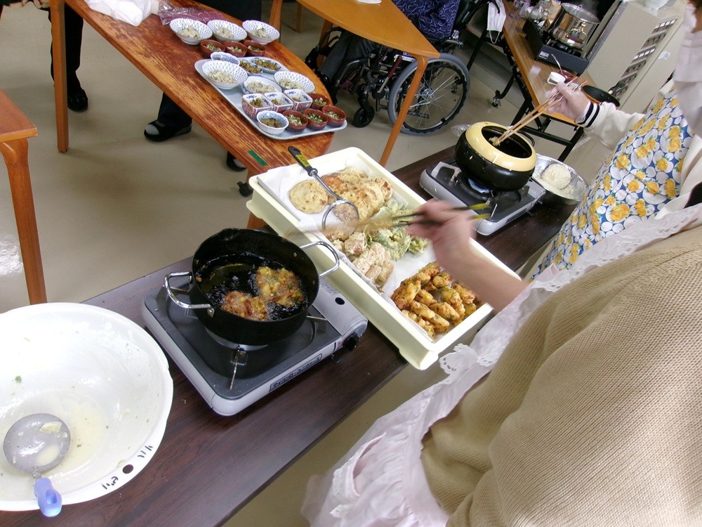 こぶしの里の畑でみんなで収穫した食材を使い、職員が腕によりをかけて料理を準備しました!