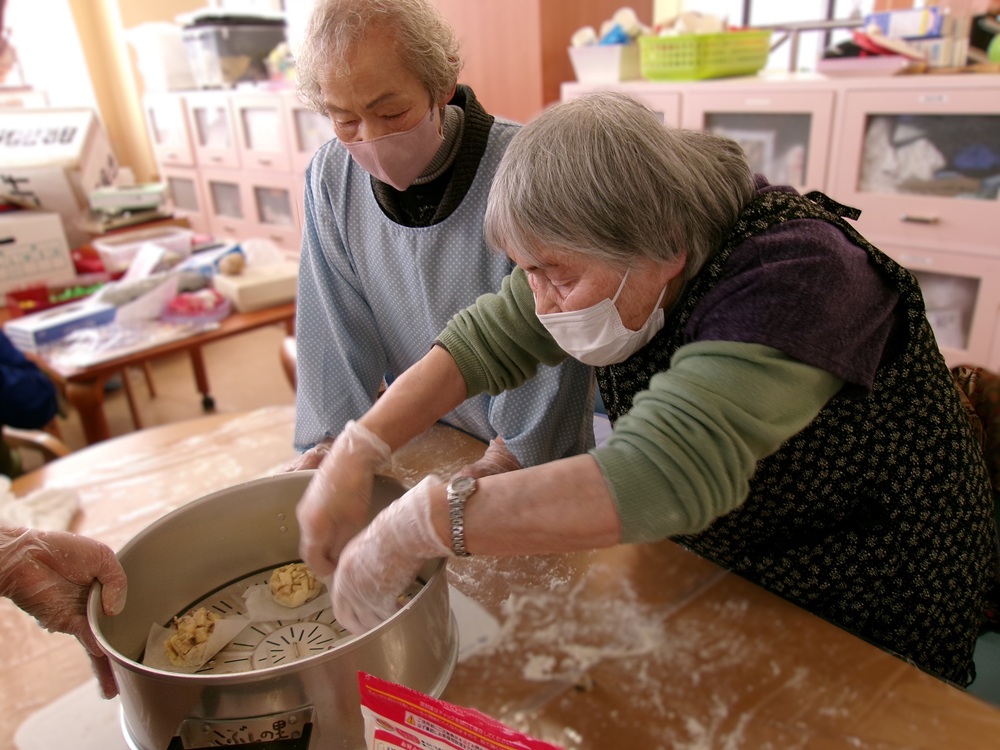 2月の行事として節分の豆まきと、別の日におやつ作りとしてフロアごとに分けて鬼まんじゅう作りを行いました。
